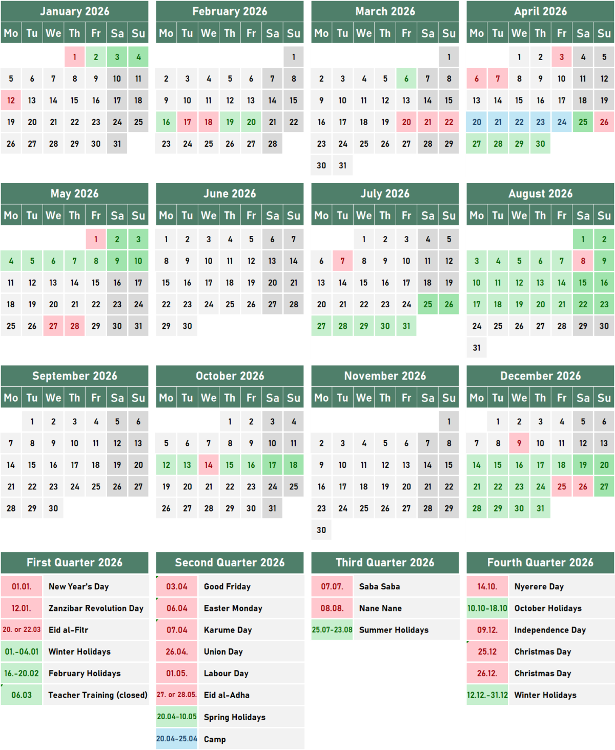 Holiday Schedule